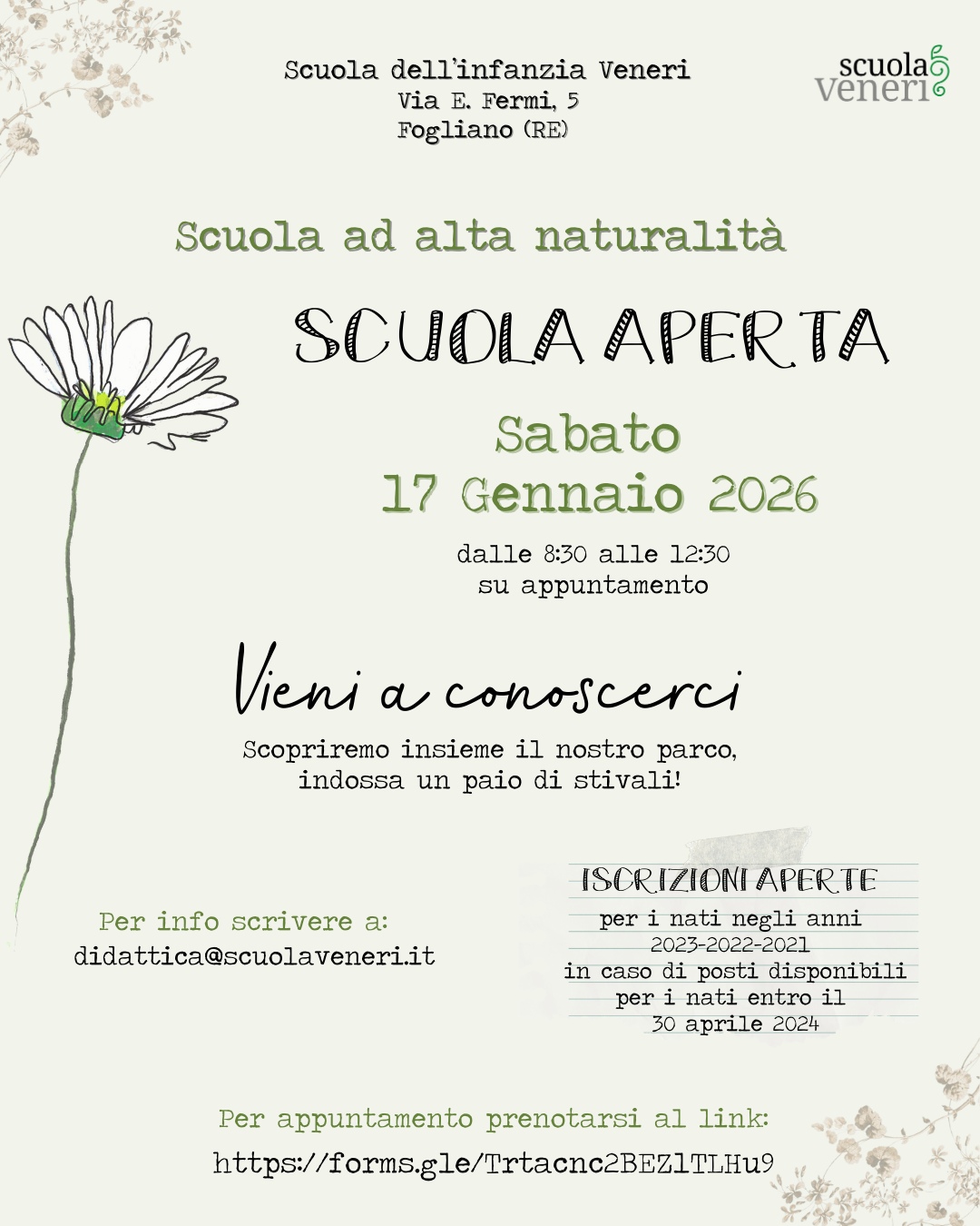 Sabato 17 gennaio la scuola Veneri è visitabile su appuntamento, dalle 8.30 alle 12.30.